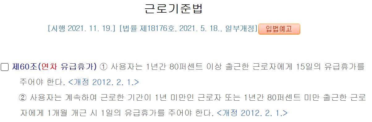 1년 미만인 근로자의 경우, 다음해에 연차를 쓰려고 아껴둔다면 입사일로부터 1년 후에는 한꺼번에 소멸이 된다는 점을 알고 있어야 합니다. 근로개정법이 개정되기 전에는 연차가 발생한 다음 해 매월 순차적으로 소멸되었는데요. 매월 순차적으로 소멸되는 것보다 1년 후에 한꺼번에 소멸되는 것이 근로자에게는 연차 사용이 더 용이할 텐데요. 하지만 연차 소멸 기간을 정확하게 알고 써야 합니다.