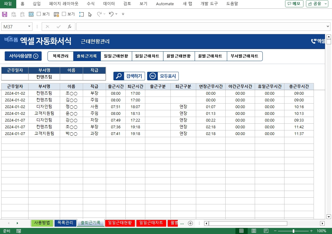 - 부서별, 월별 근태 현황 보고서를 자주 만드는 분