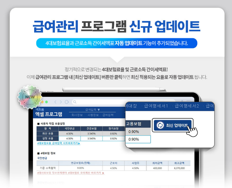 👉 급여관리 프로그램(4대보험요율 자동 업데이트) 다운로드