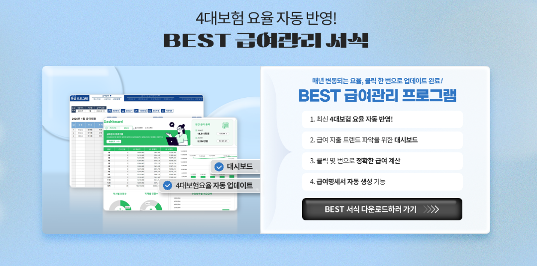 연말이 다가오면서 급여서식을 잘 활용하여 세금 환급의 기회를 놓치지 않고, 2026년 4대보험료율 변경에도 슬기롭게 대비하시기를 바랍니다. 😉👍🏻❤️✨