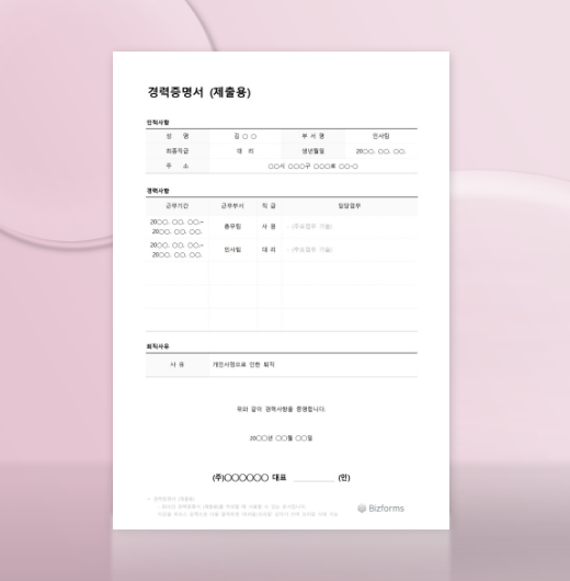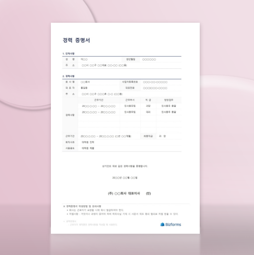 경력증명서 양식이 필요하신가요? 비즈폼에서는 다양한 형태의 경력증명서 양식을 제공하고 있습니다!